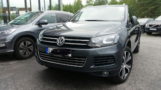 Vi ringer svåger när vi äter lunch och han berättar att de finns en fin Touareg i Täby.