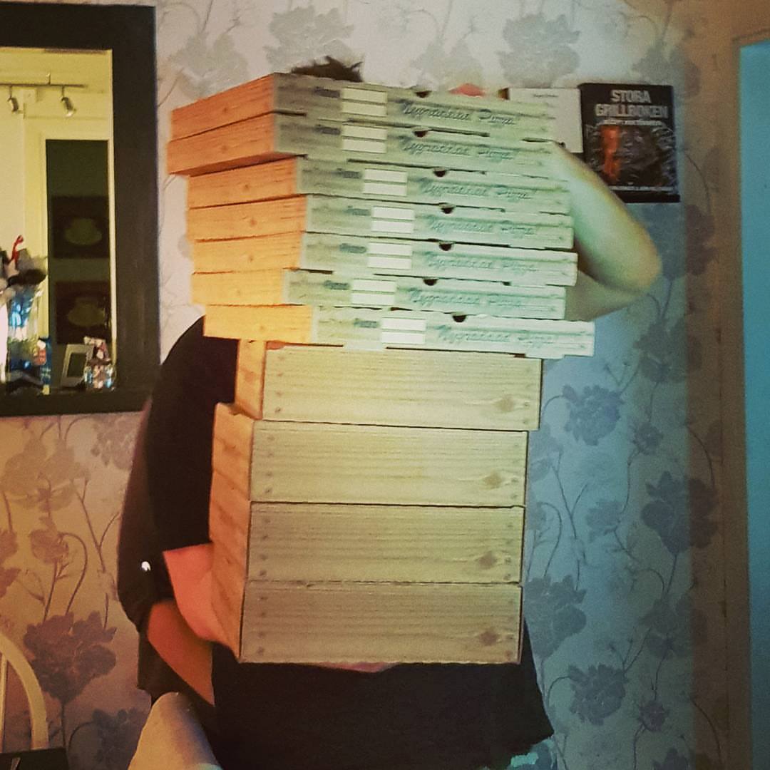 Vi duschade av oss allt sticksigt och sen gick vi tillbaks till grannen. Maken och ytterligare en annan granne åkte och handlade pizza och så samlades vi och käkade.