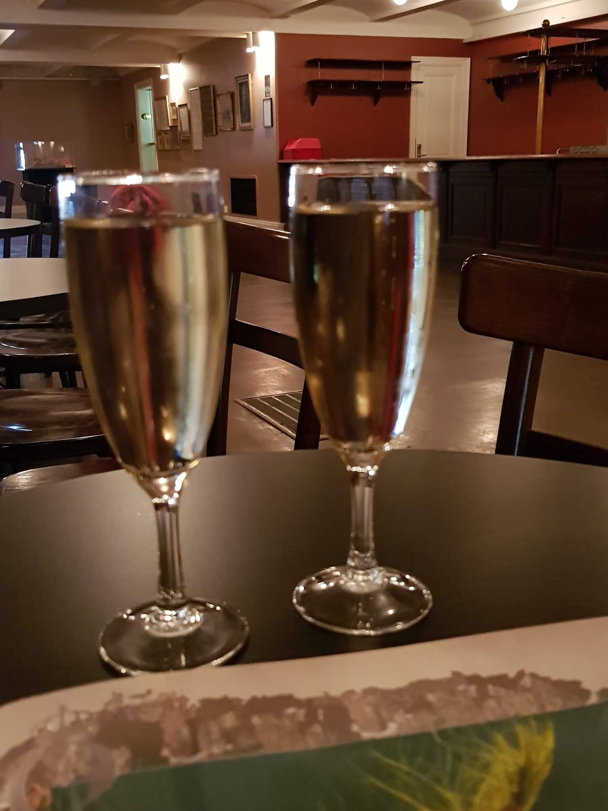 Vi åkte in så att vi var i ganska god tid och åkte upp och satte oss med varsitt glas cava.